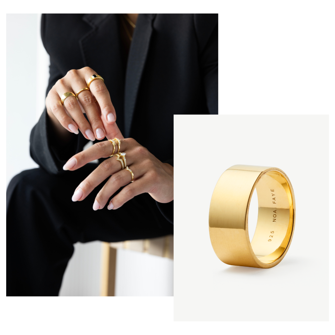We approach jewelry the way we approach our wardrobes. Starting off with well-made classic bold rings is a must. Build your ring stack and add some statements along the way depending on your mood or plans.